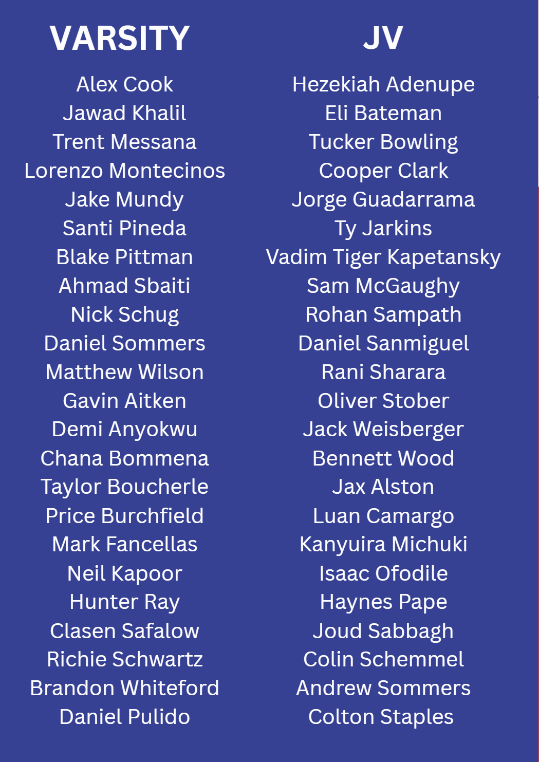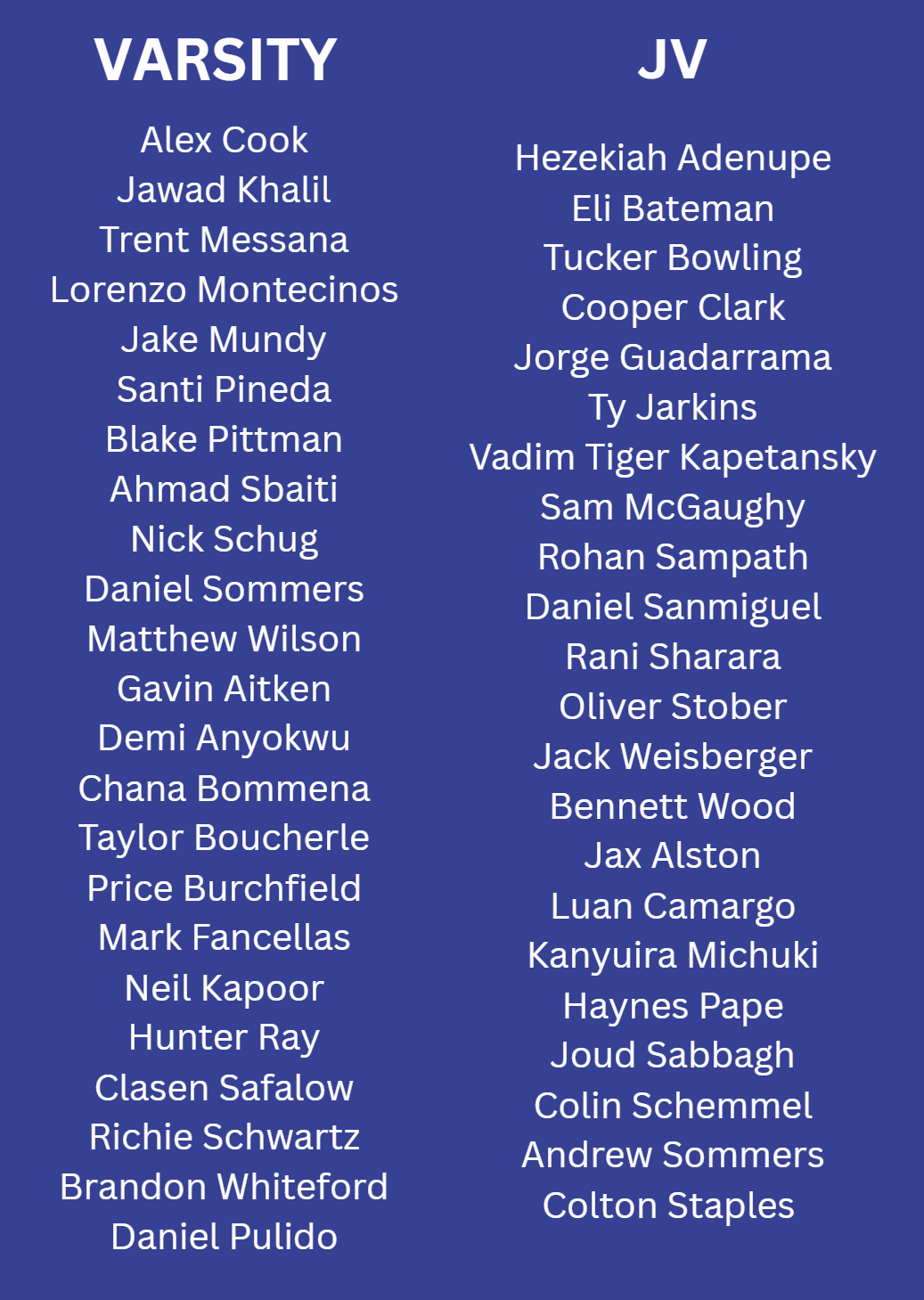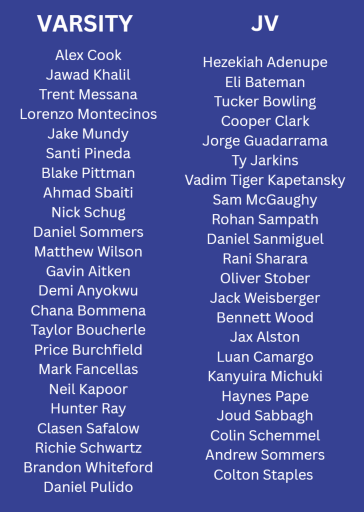 Congratulations to the following athletes for making the 2026 Walton Soccer Men’s team: